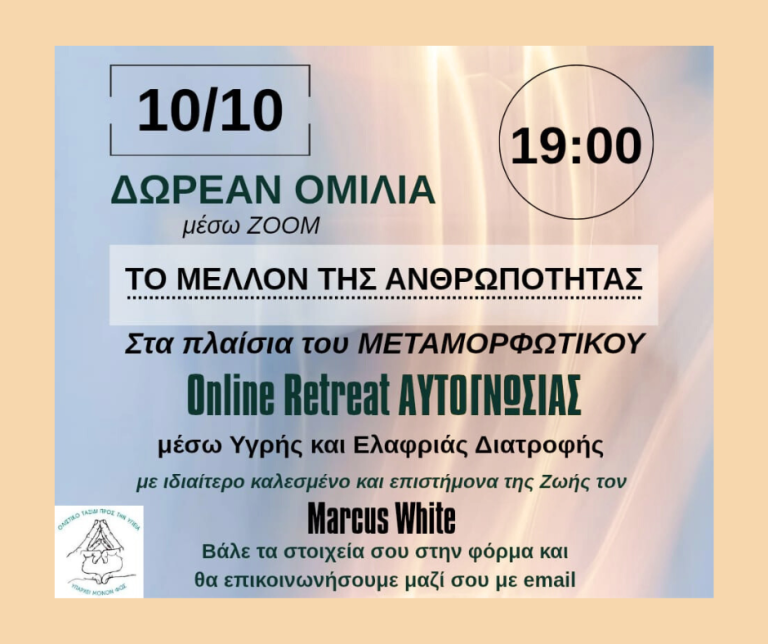ΔΩΡΕΑΝ ΟΜΙΛΙΑ 10/10 ”Το Μέλλον της Ανθρωπότητας” με τον Marcus White